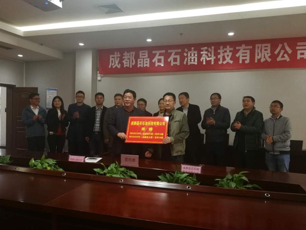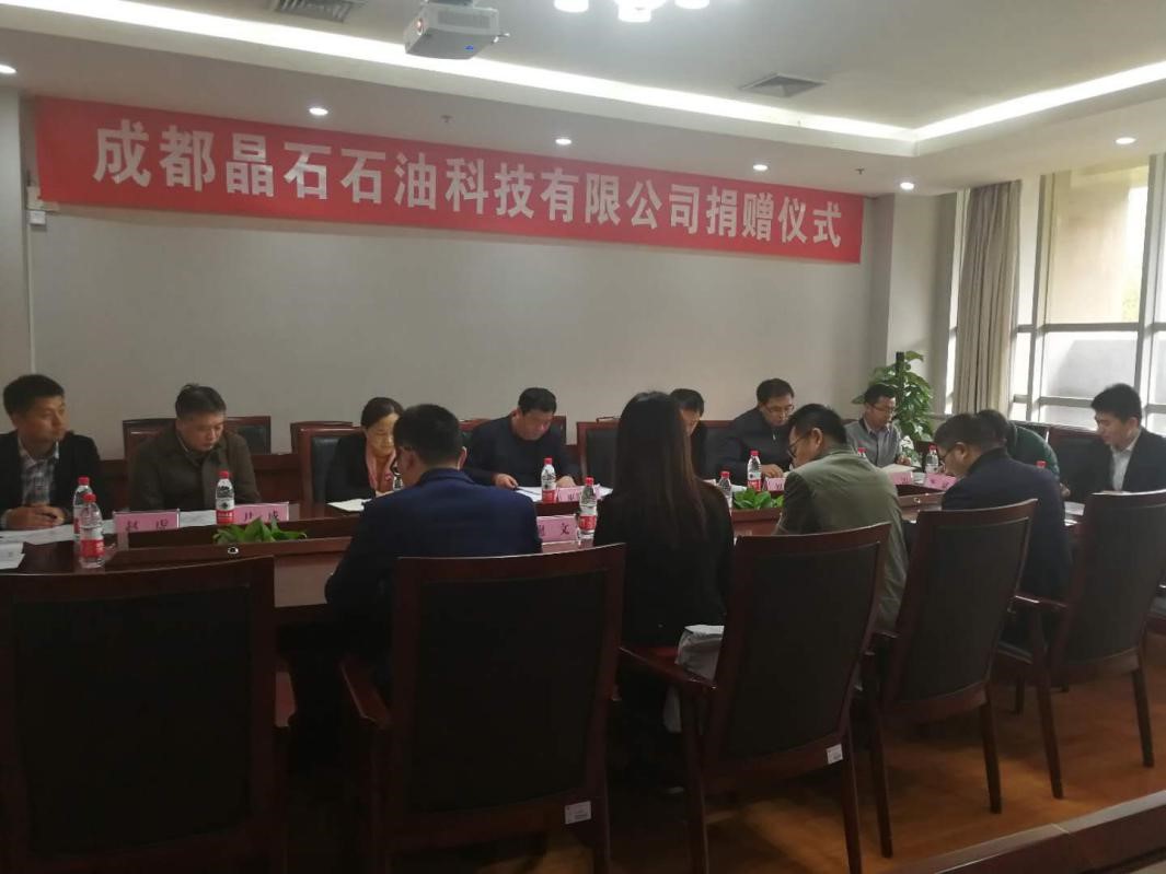 2019年3月27日,成都晶石石油科技有限公司(以下简称:晶石石油科技)与西南石油大学举行战略合作协议签订及捐赠仪式。成都晶石石油科技有限公司总经理刘力辉、项目经理杨忠等一行人,西南石油大学副校长巫晓兵、地球科学于技术学院院长刘向君及教育发展基金会理事长亢旗军等校园领导出席了捐赠仪式。